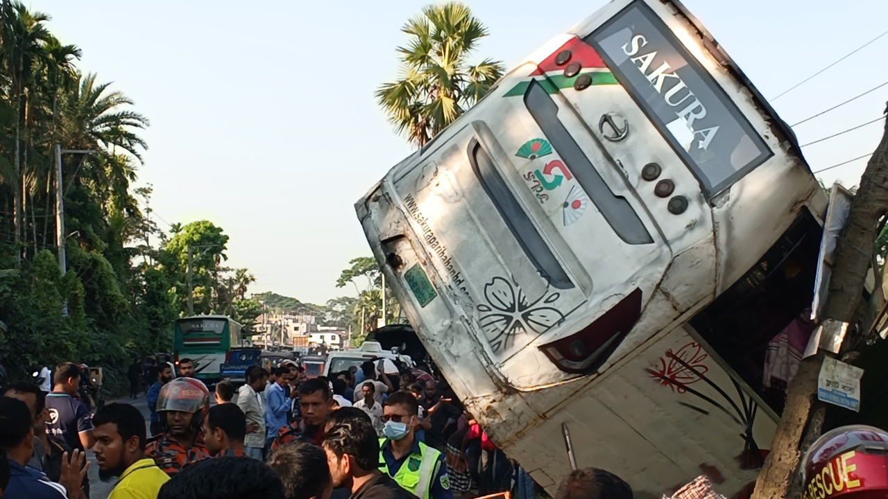 গৌরনদীতে সাকুরা পরিবহনের বাস দুর্ঘটনা, আহত ১৪